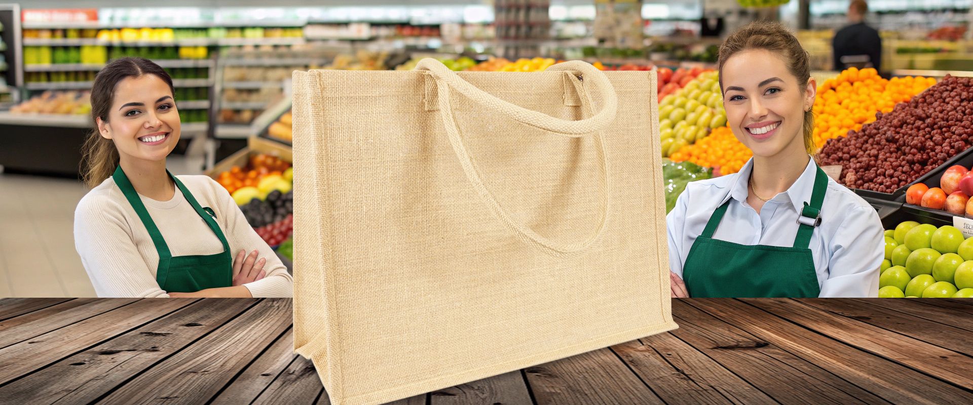 Große naturfarbene Jute-Einkaufstasche mit langen Tragegriffen