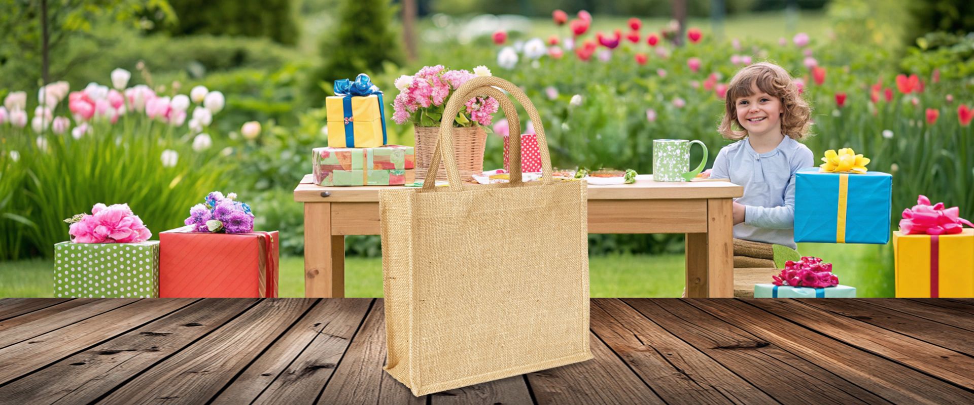 Unsere kleine Jutetasche im Präsentformat oder als Dekoartikel.
