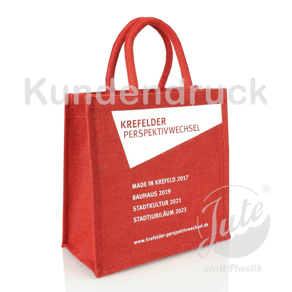 Unsere beliebte kleine Jutetasche vollgefärbt Rot