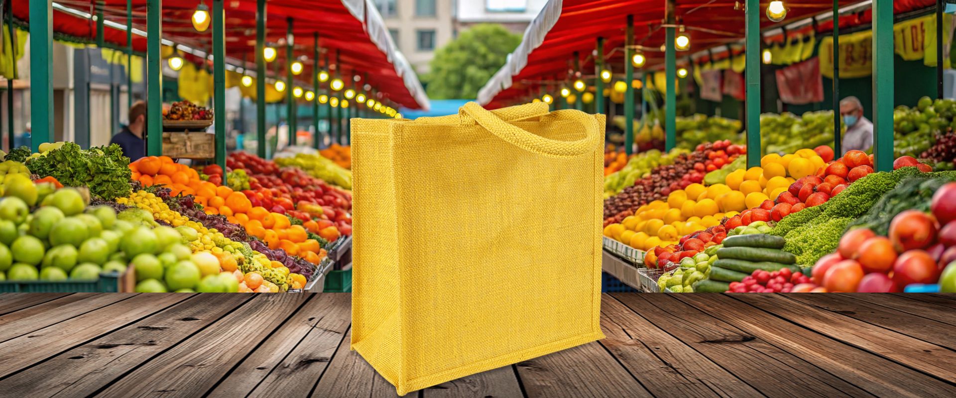 Unsere beliebte kleine Jutetasche vollgefärbt Gelb